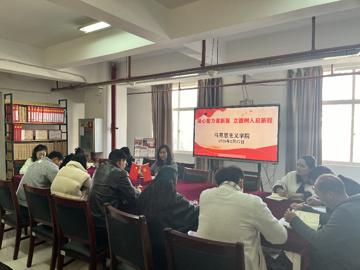 针对如何做好新学期的重点工作,杨晓艳强调:一要聚焦教学。贯彻落实新学期开学教学检查工作要求,认真备课、加强课堂管理,严格按照学校各项教学制度开展教学活动,守好课堂主渠道,深化教学改革,提升课堂吸引力。二要精心上好“开学第一课”。结合“张桂梅思政大讲堂”、2026年春节联欢晚会等内容,将爱国主义教育、理想信念教育等有机融入课堂教学,为不断提升思政课的吸引力和实效性开好局、起好步。三要深耕科研,建强队伍。新学期要着力强化科研教改水平,坚持以科研反哺教学,推动前沿研究成果及时转化为教学资源,真正实现教研相长、协同共进;持续加强师德师风建设,关心青年教师成长发展,着力打造有情怀、有温度的“马院大家庭”。四要聚力品牌建设,围绕立德树人的根本任务,立足学校办学定位,不断强化马克思主义学院内涵建设与特色发展,着力打造契合高职特点、具有示范效应的思政品牌。